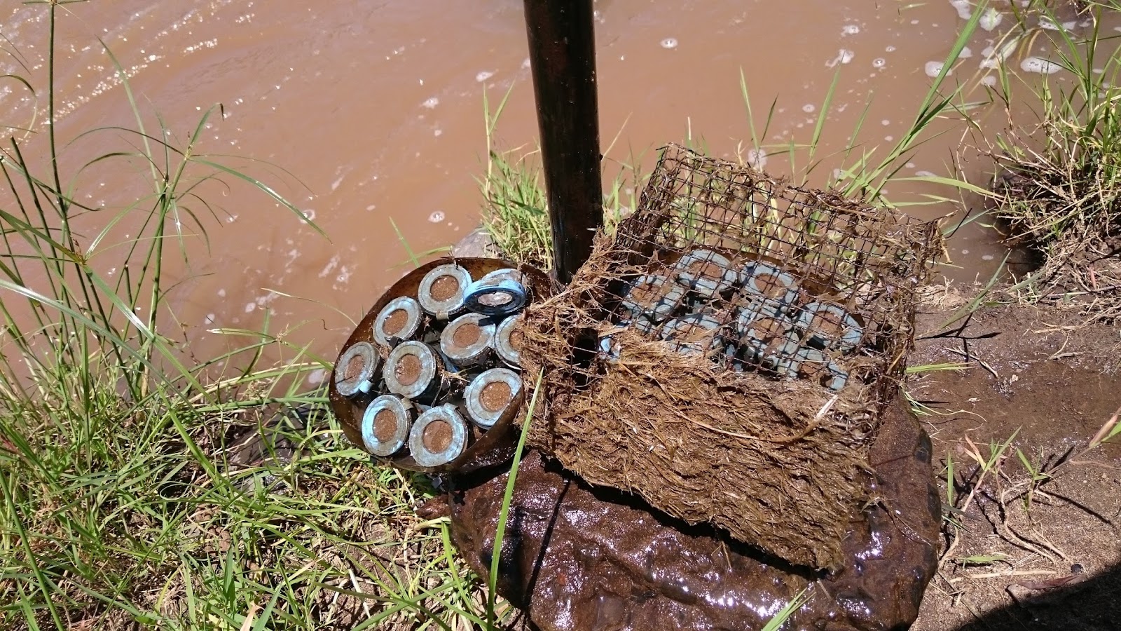 I wasn’t originally planning to run this experiment this year, as we already had a full schedule, but I was excited to be able to put this together almost completely with supplies we had stored around our camp. I built two of these that I deployed at two different sites in the river. I left them out for two weeks and hoped they didn’t get stepped on by a hippo, washed away in a flood or collected by an enterprising Maasai person with a need for some glass discs. I always consider it a major win when we put something out in the river and return later to find it still there.
